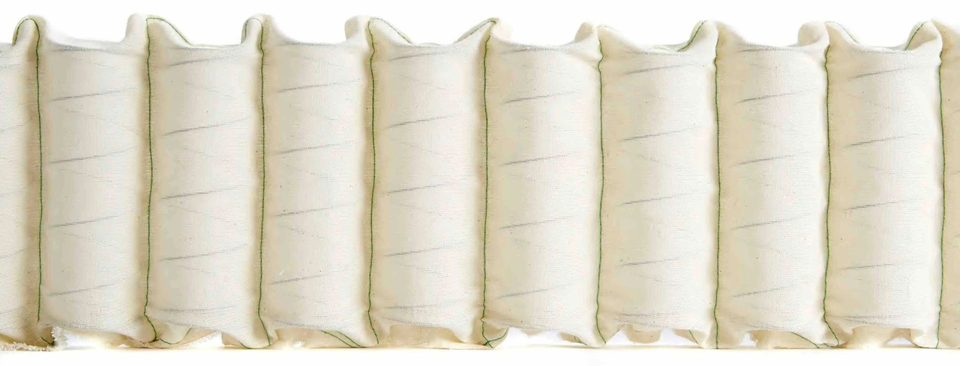 These pockets are stitched or glued together side by side, forming rows of springs that can compress vertically while remaining separated horizontally.